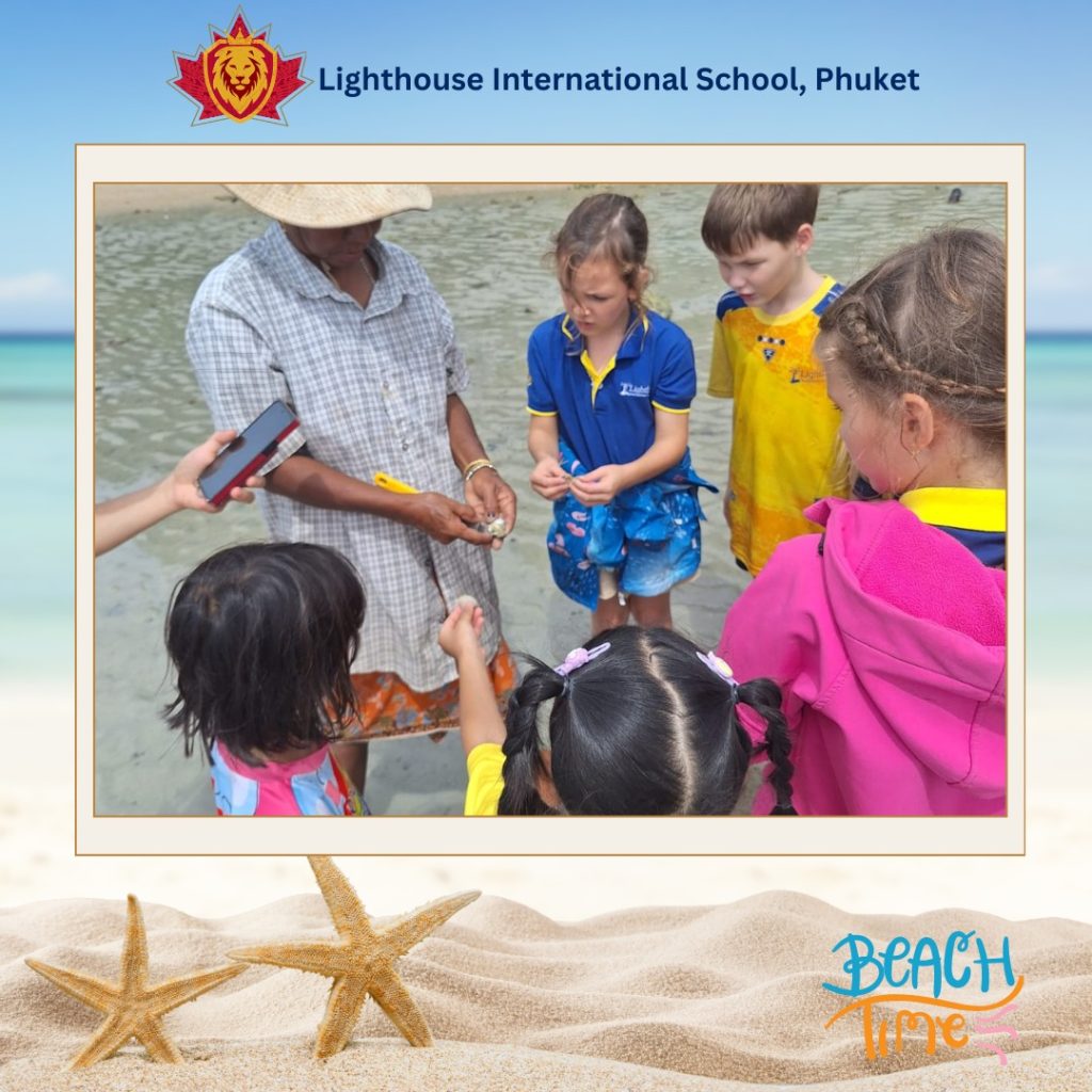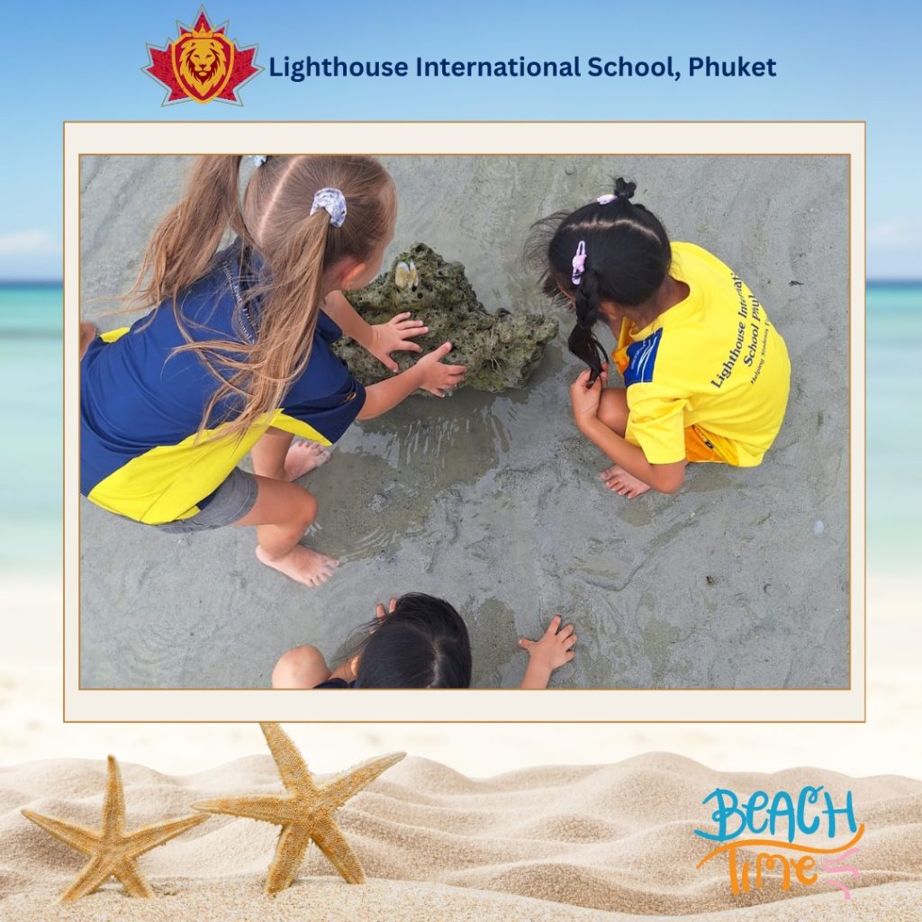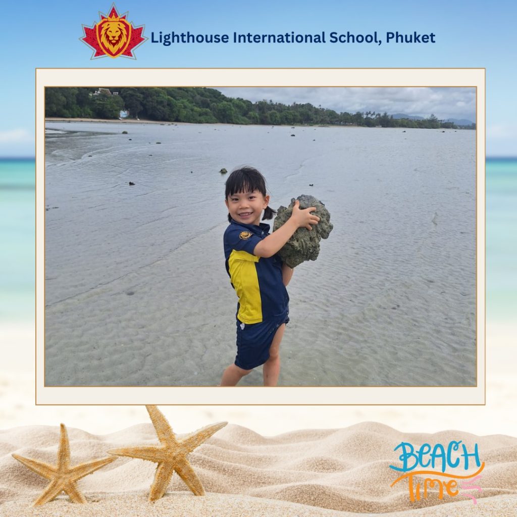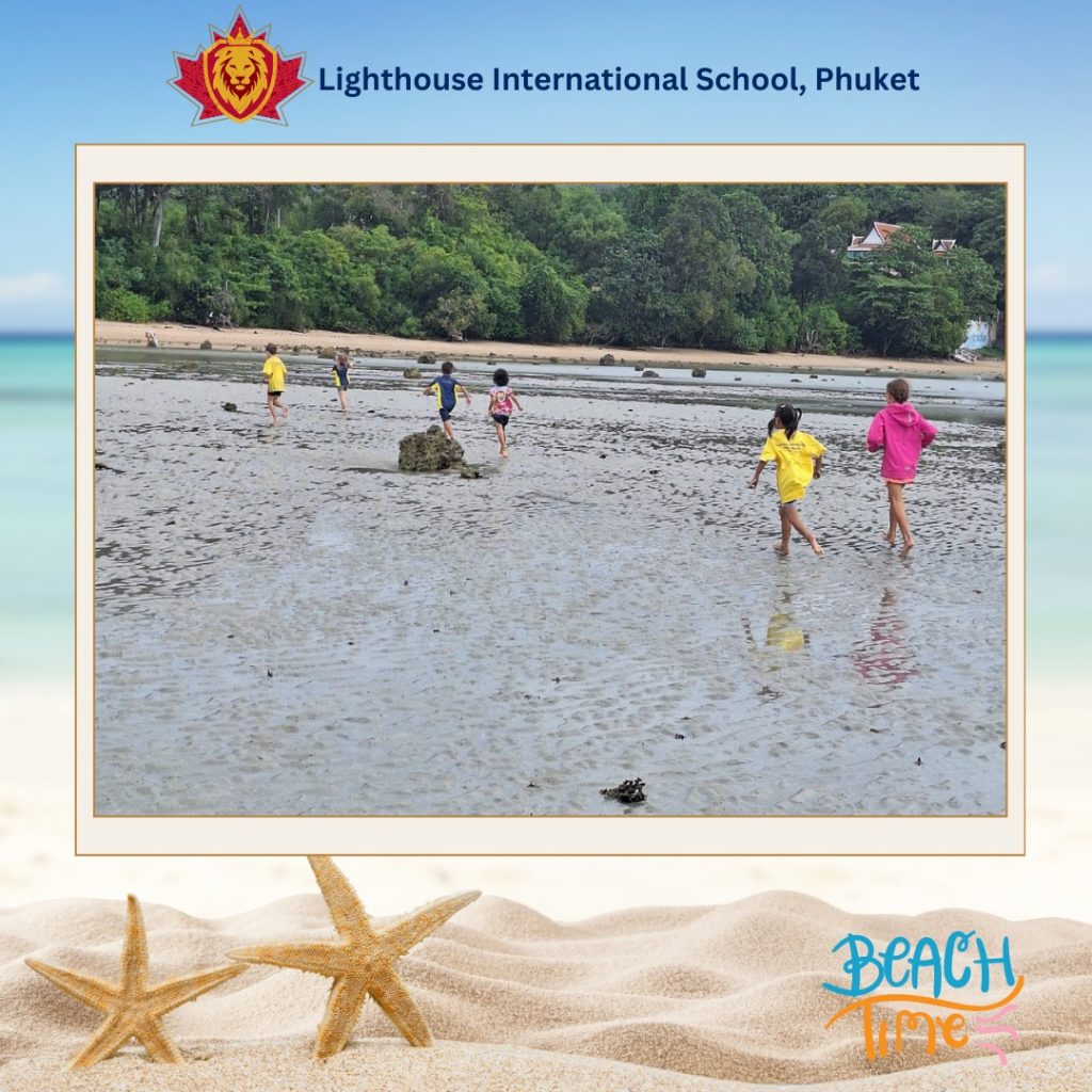Our Grade 1 students found out about tides, rock pool coverage, and the creatures that can be found in a Phuket Beach. The students explored the beach and observing their surroundings at low tide. They found washed up corals and shells, rock pools with fish, sea slugs and some mussels clinging to the rocks. It was truly an exciting and memorable learning day for sure.