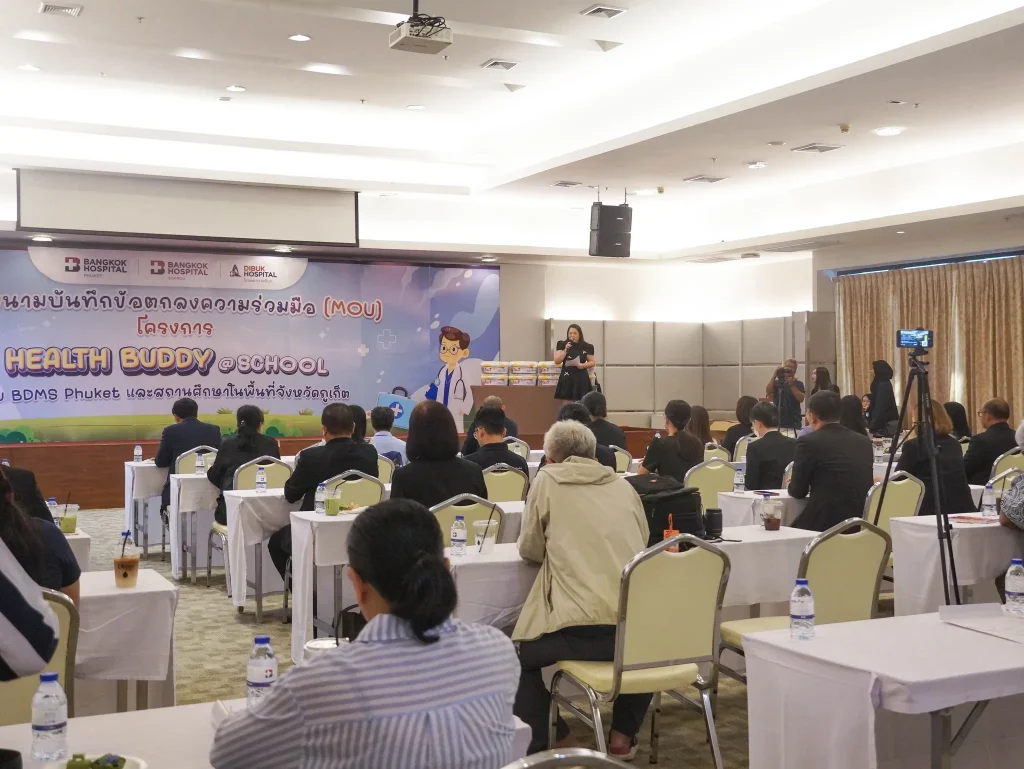 School leaders from more than 30 educational institutions across Phuket gathered for the official MOU signing ceremony, marking a strong partnership between schools and healthcare professionals to promote holistic student health.