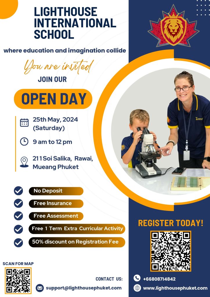 Join our Open Day on the 25th of May, 2024 (Saturday) from 9 am to 12 pm at 211 Soi Salika, Rawai, Mueang Phuket.